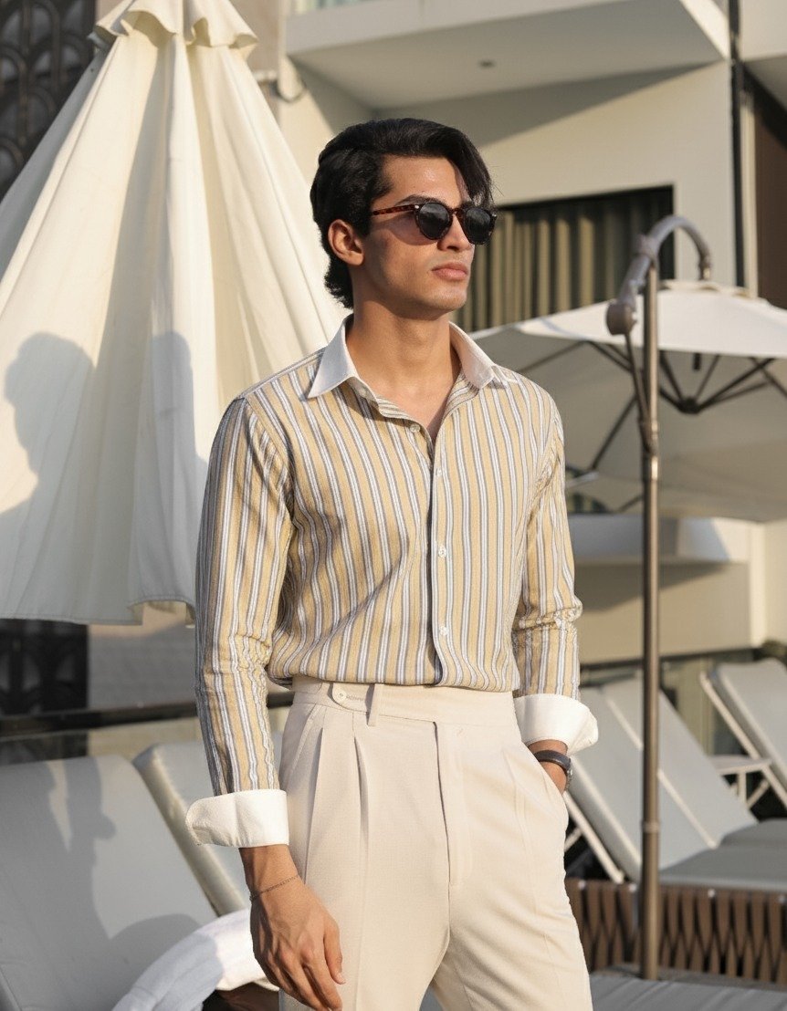 Introducing our contrast-collar stripe shirt — where classic tailoring meets contemporary refinement.